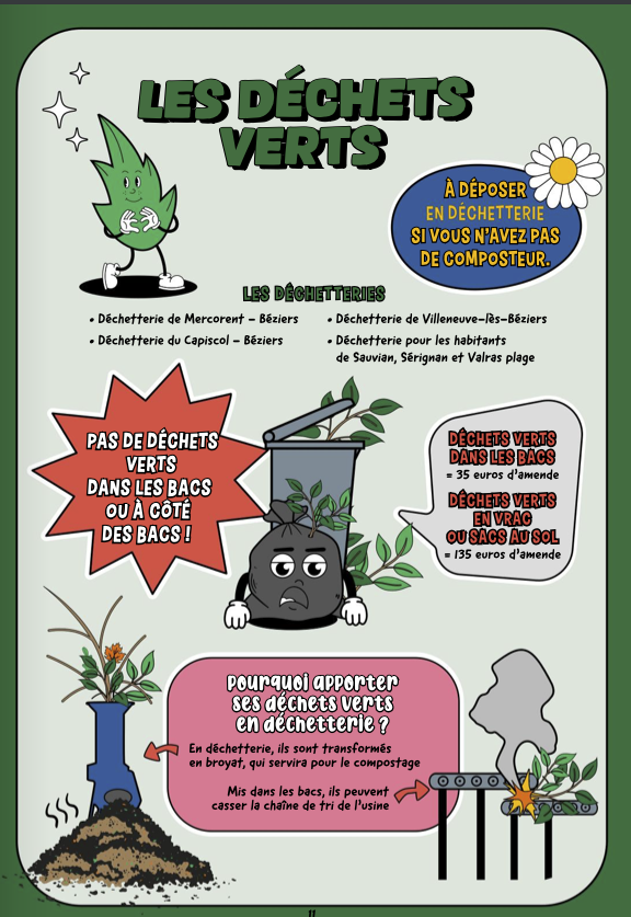 Les déchets Verts Les végétaux ne sont pas des ordures ménagères ! Il est donc interdit de les jeter dans votre poubelle. En effet, les chaines de tri des déchets, n'étant pas prévues pour trier les végétaux, cela occasionne des pannes extrêmement coûteuses. Outre leur collecte en déchetterie, les productions de compost et de broyat permettent ce que l’on appelle vertueusement « un retour à la terre ». Ils sont à déposer en déchetterie.